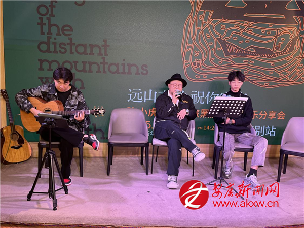 分享會由安康市融媒體中心主持人王倩擔(dān)任主持,她以簡潔有力的開場,引出本次活動的核心人物——被譽為“西北民謠詩人”的陳小虎。陳小虎登臺后,首先與主持人共同展開“人與城”的深度藝術(shù)對談,他分享了《祝你安康》的創(chuàng)作契機,并闡述了在數(shù)字時代堅持制作黑膠專輯的文化意義。