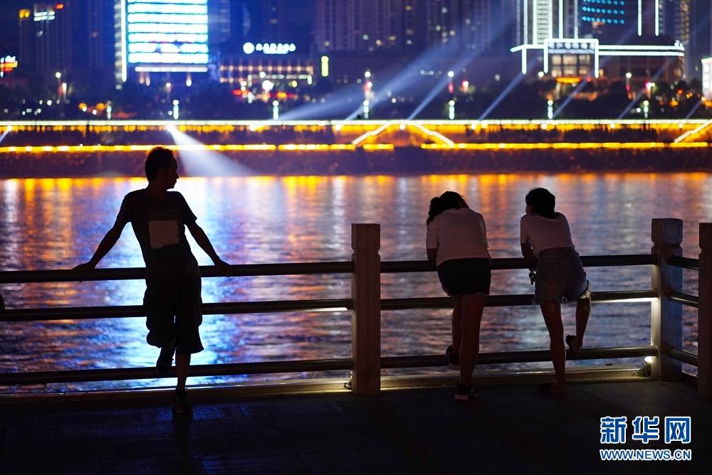 7月20日,市民在安康城區(qū)江南岸邊納涼。