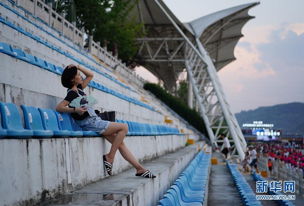 7月20日,一名市民在安康城區(qū)江南岸邊的看臺(tái)上休息。