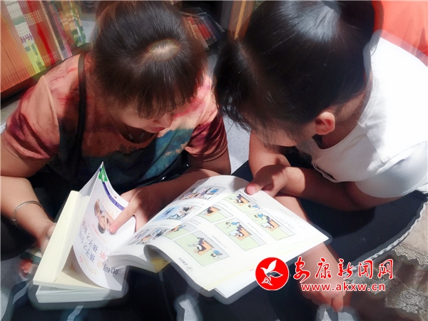 天氣十分炎熱,但仍擋不住市民們學(xué)習(xí)的熱情。 8月14日,記者在漢唐書城看到,書城里人來人往,十分熱鬧,天天爆滿,一座難求。來泡館的人中,中學(xué)生、大學(xué)生居多,還有許多父母帶著小學(xué)放暑假的孩子來“充電學(xué)習(xí)”。王女士家在城區(qū)新城附近,一放假便帶兒子來圖書館借書,“他最喜歡看那些百科全書了,對(duì)植物特別感興趣,我也會(huì)專門給他借一些名著”。不遠(yuǎn)處,孩子坐在地上認(rèn)真地翻閱著手中的書籍。在這個(gè)飄蕩著書香的環(huán)境下,已經(jīng)沒有空的座位,許多人席地而坐。一排排的“低頭族”和整齊劃一的書架相互陪伴,安靜而溫馨。