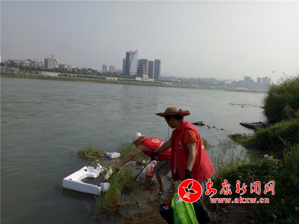 安康新聞網(wǎng)訊(實(shí)習(xí)記者 唐正飛 通訊員 王宗梅 林超 )8月17日天蒙蒙亮,漢江河岸旁除了零零星星的一些晨練市民,在水岸草叢處,身著紅色志愿服裝的海燕和她的隊(duì)友們?cè)谇宄旱暮铀骋r下,格外顯眼。每天從早上6點(diǎn)起,大北社區(qū)居民海燕和她的隊(duì)員們就開始了一天的河岸垃圾打撈護(hù)河工作,從水西門到暴家巷河段,海燕和她的隊(duì)友們一趟走下來要花近1個(gè)小時(shí),盡管是“三伏”天,海燕和她的隊(duì)員每天都要走一趟。