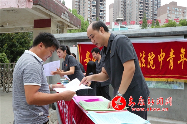 活動(dòng)現(xiàn)場(chǎng),劉來(lái)剛副院長(zhǎng)率先向前來(lái)咨詢(xún)的社區(qū)群眾發(fā)放法制宣傳資料、解答法律咨詢(xún)。青年法官服務(wù)團(tuán)的法官們積極主動(dòng)向過(guò)往行人發(fā)放法制宣傳材料,熱情接待各類(lèi)法律咨詢(xún)。此次活動(dòng)共累計(jì)發(fā)放宣傳材料500余份,解答法律咨詢(xún)20余人次,取得了良好的宣傳效果。