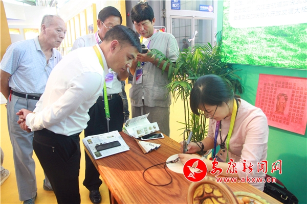 此次亮相于文博會的烙畫作品,均是以李紅霞自己家鄉(xiāng)平利的地域文化為素材創(chuàng)作,以獨有的楮皮紙烙畫、立體木盤烙畫、葫蘆烙畫為主,F(xiàn)場記者看到很多人有想要購買的欲望,有詳細了解做品工藝的,也有詢問價格的.....