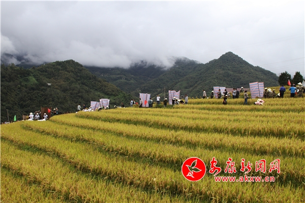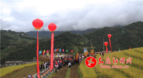 安康新聞網(wǎng)訊(記者 張喬 通訊員 張昊 曹婷婷)稻香秫熟暮秋天,阡陌縱橫萬(wàn)畝連。金秋九月,又是一年豐收季。9月17日,嵐皋縣在南宮山鎮(zhèn)桂花村舉辦慶中國(guó)農(nóng)民豐收暨南宮稻作文化節(jié)。全縣12個(gè)鎮(zhèn)及縣內(nèi)外游客1000余人參加活動(dòng)。新華社、陜西日?qǐng)?bào)、安康日?qǐng)?bào)、安康新聞網(wǎng)、安康電視臺(tái)、嵐皋廣播電視臺(tái)等媒體應(yīng)邀報(bào)道活動(dòng)。