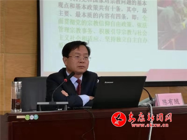 陳有隨從貫徹落實(shí)中央統(tǒng)戰(zhàn)工作會(huì)議精神著手,緊緊圍繞統(tǒng)一戰(zhàn)線的地位作用、統(tǒng)一戰(zhàn)線的基本政策、統(tǒng)一戰(zhàn)線的基本實(shí)踐三個(gè)方面,對(duì)統(tǒng)戰(zhàn)工作進(jìn)行了深刻系統(tǒng)的闡述。授課緊密結(jié)合工作實(shí)例,將統(tǒng)戰(zhàn)理論政策與基層統(tǒng)戰(zhàn)工作有機(jī)結(jié)合,既有理論高度,又有實(shí)踐深度,既總結(jié)了我市統(tǒng)戰(zhàn)工作的成績(jī),又客觀指出了當(dāng)前統(tǒng)戰(zhàn)工作中存在的問(wèn)題,既為大家更好履職提供了基本遵循,又提出了明確要求和殷切希望,具有很強(qiáng)的理論性、指導(dǎo)性和可操作性。