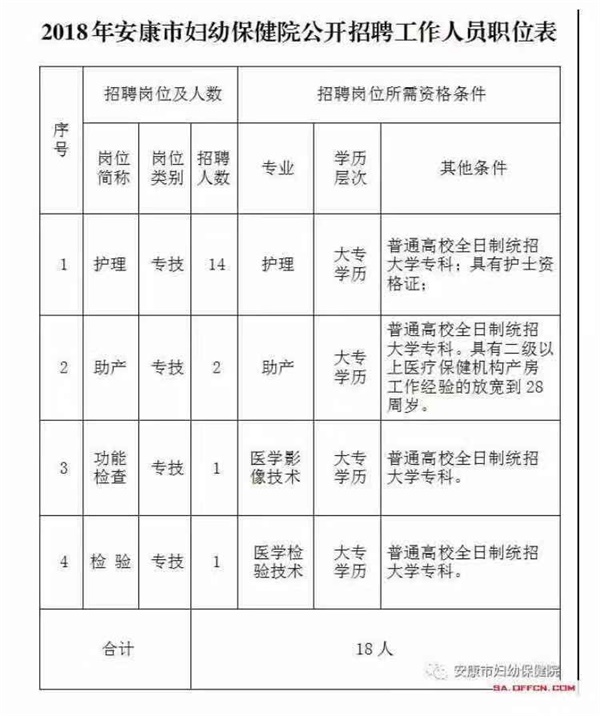 經(jīng)安康市衛(wèi)計(jì)局批準(zhǔn),安康市婦幼保健院院2018年擬公開(kāi)招聘護(hù)理等專(zhuān)業(yè)技術(shù)人員,F(xiàn)將有關(guān)事項(xiàng)公告如下: