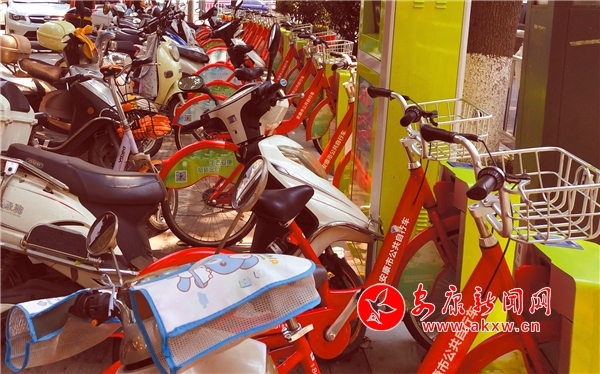 11月13日下午,在大橋路漢濱區(qū)政務(wù)大廳辦完事的張先生準(zhǔn)備租輛自行車騎行回家。“可我到站點一看,卻發(fā)現(xiàn)根本就借不出來!”張先生介紹說,“前來辦事的人很多,政務(wù)大廳附近沒有停車場,很多人就把車停到了站點上,把自行車全都堵在了里面,根本就取不出來。有人為了停車,還把自行車扳了個彎彎子。”