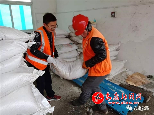 在急彎陡坡、背陰路段鋪撒防滑料、融雪劑