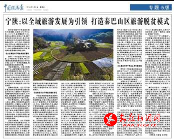 1月5日,《中國(guó)旅游報(bào)》用一個(gè)整版推廣了寧陜創(chuàng)新秦巴山區(qū)旅游脫貧的工作經(jīng)驗(yàn)。1月18日,國(guó)家旅游局、國(guó)務(wù)院扶貧辦在四川涼山自治州召開全國(guó)旅游扶貧工作會(huì),將寧陜縣《堅(jiān)持全域旅游發(fā)展為引領(lǐng),創(chuàng)新秦巴山區(qū)旅游脫貧模式》作為七大旅游扶貧典型案例面向全國(guó)推廣。