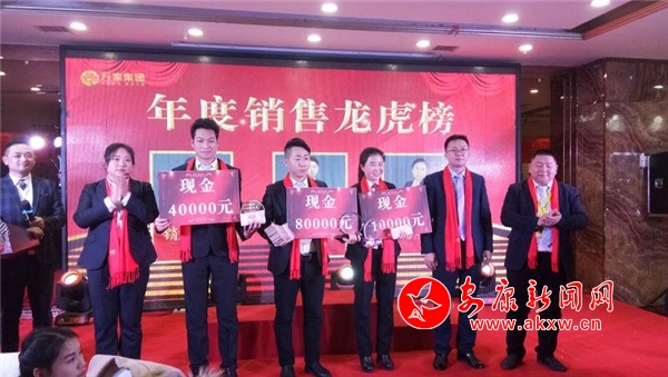 萬家在2018年交出了一份滿意的答卷,離不開每一位員工的辛勤耕耘!領(lǐng)導(dǎo)致辭結(jié)束后,公司領(lǐng)導(dǎo)分別為年度優(yōu)秀個人獲獎?wù)摺⒛甓蠕N售前三名個人獲獎?wù)咭约澳甓蠕N售冠軍團隊頒發(fā)了獎金、獎杯、榮譽證書等獎品,以資鼓勵。