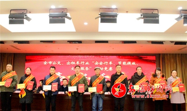 安康新聞網(wǎng)訊(記者 鄭運(yùn)祥)1月25日下午,市交通運(yùn)輸局、市總工會(huì)聯(lián)合舉辦全市公交、出租車(chē)行業(yè)“安全行車(chē)、節(jié)能提效、文明服務(wù)”勞動(dòng)競(jìng)賽表彰活動(dòng),50名公交車(chē)駕駛員、45名出租車(chē)駕駛員被授予安康市公交、出租車(chē)行業(yè)“文明服務(wù)標(biāo)兵”榮譽(yù)稱(chēng)號(hào),并接受表彰。市委常委、副市長(zhǎng)劉建平出席活動(dòng)并講話。