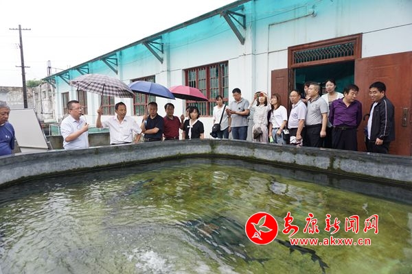 (觀摩匙吻鱘親魚培育情況)