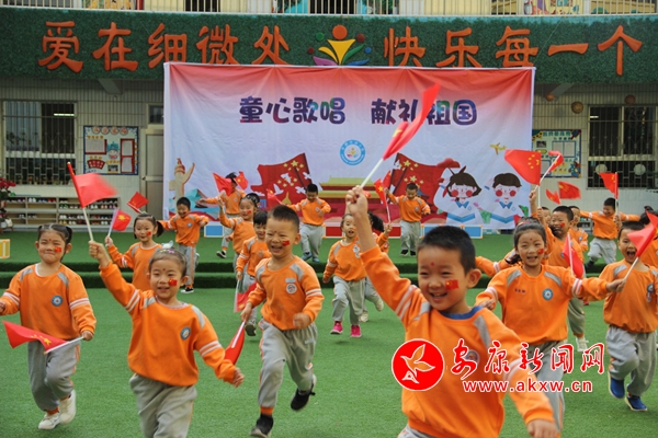 隨后,“我愛(ài)北京天安門(mén)”、“大中國(guó)”、“祖國(guó)祖國(guó)我愛(ài)你”、“紅星閃閃”稚嫩的歌聲、生動(dòng)的表演,表達(dá)了孩子們對(duì)祖國(guó)70華誕的美好祝福;“一二一”“立正”“稍息”“向右看齊”挺拔的軍姿、整齊的動(dòng)作、剛勁的一招一式,贏得了老師和小朋友們陣陣掌聲和歡呼聲,將活動(dòng)不斷推向高潮。
