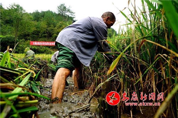 女媧山300畝原生態(tài)水稻開鐮 貧困戶臉上笑開顏