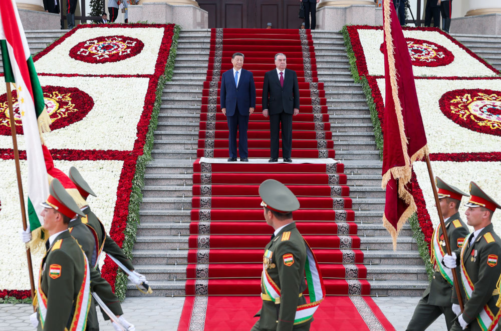 拉赫蒙為習(xí)近平舉行盛大隆重的歡迎儀式。