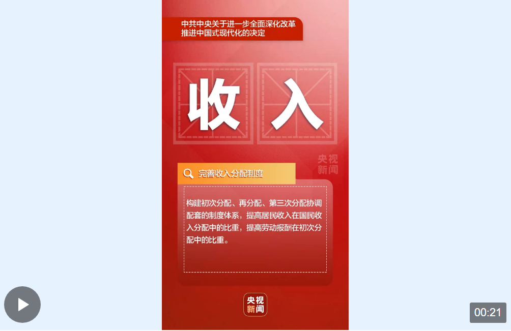 今天(7月21日),《中共中央關于進一步全面深化改革、推進中國式現(xiàn)代化的決定》發(fā)布!稕Q定》在健全保障和改善民生制度體系方面,提出完善收入分配制度,規(guī)范收入分配秩序;健全靈活就業(yè)人員、農(nóng)民工、新就業(yè)形態(tài)人員社保制度,全面取消在就業(yè)地參保戶籍限制;提出加快構建房地產(chǎn)發(fā)展新模式,充分賦予各城市政府房地產(chǎn)市場調控自主權等。BwE安康新聞網(wǎng)