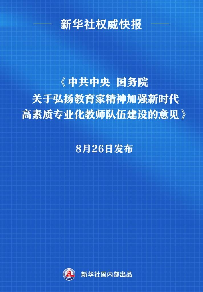 《中共中央 國務(wù)院關(guān)于弘揚(yáng)教育家精神加強(qiáng)新時(shí)代高素質(zhì)專業(yè)化教師隊(duì)伍建設(shè)的意見》8月26日發(fā)布。